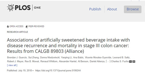 学术神刊PLOS ONE总是自带喜感,最近的文章称,喝“无糖”软饮料有助于降低晚期结肠癌患者癌症复发和死亡的风险。