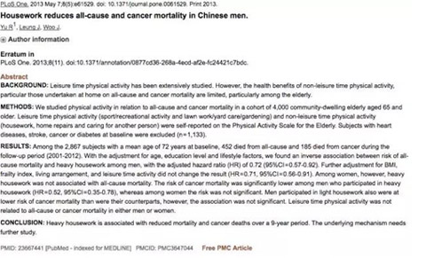 1.《做家务活可以降低中国男人的全因死亡率和癌症死亡率》